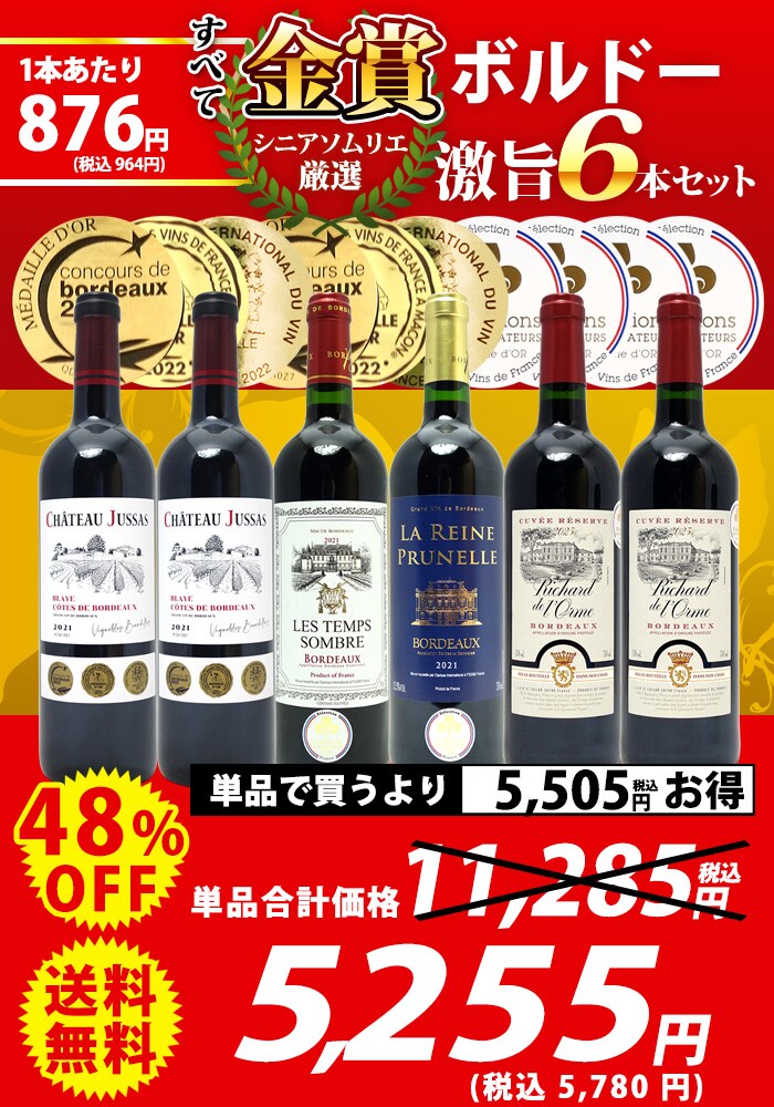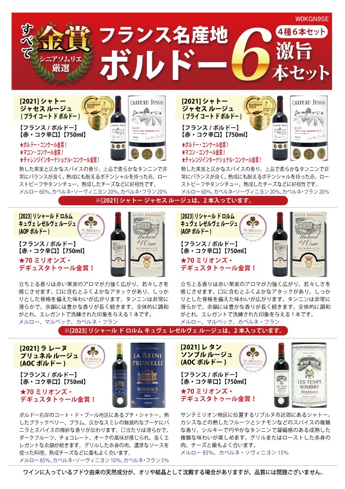 送料無料 ワイン ワインセット 全て金賞フランス名産地 ボルドー赤6本セット ^W0KGP3SE^