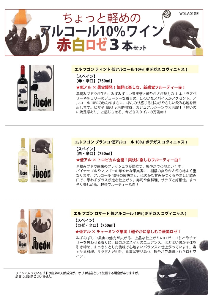 ワイン ワインセット 送料無料 ちょっと軽めのアルコール10%ワイン 赤白ロゼ 3本セット 飲み比べセット ギフト ^W0LA01SE^