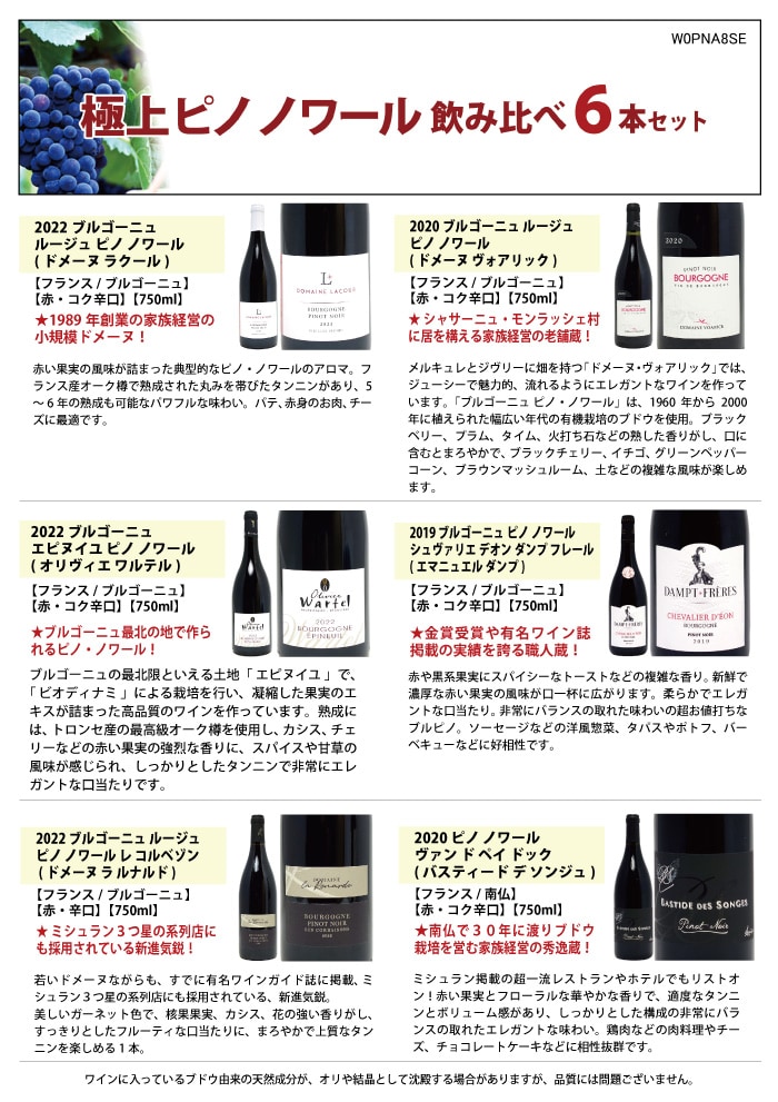 送料無料 ワイン ワインセット 極上ピノ ノワール飲み比べ赤6本セット ^W0PNA8SE^