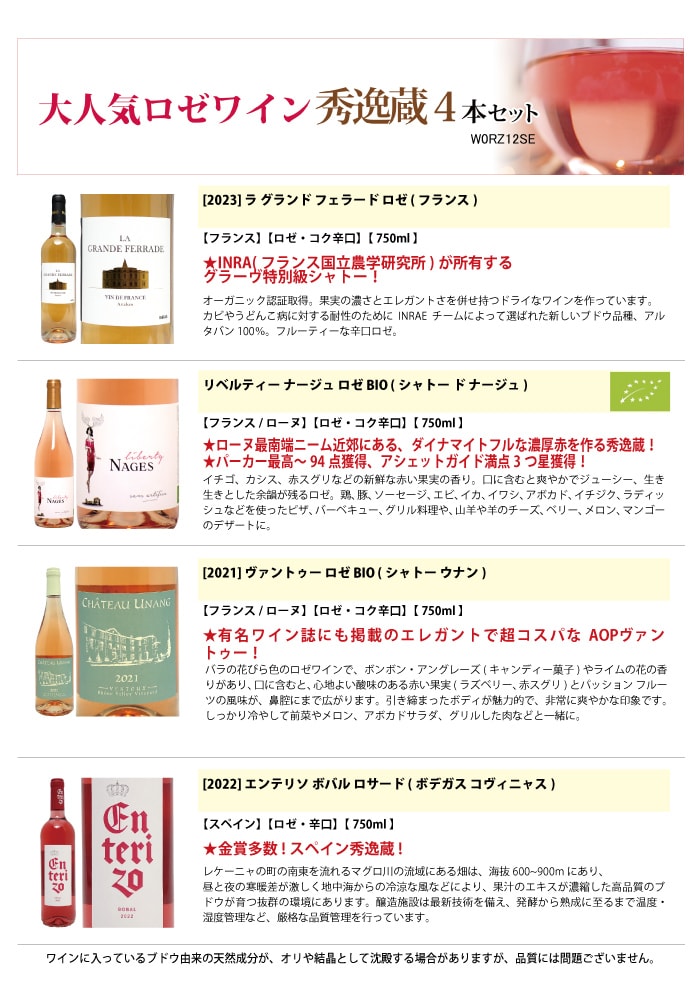 送料無料 ワインセット ロゼワイン4本セット 飲み比べセット ギフト ^W0RZ12SE^