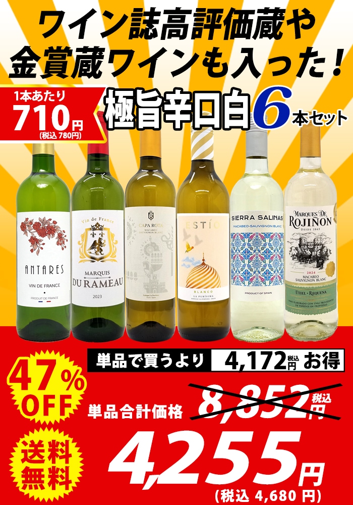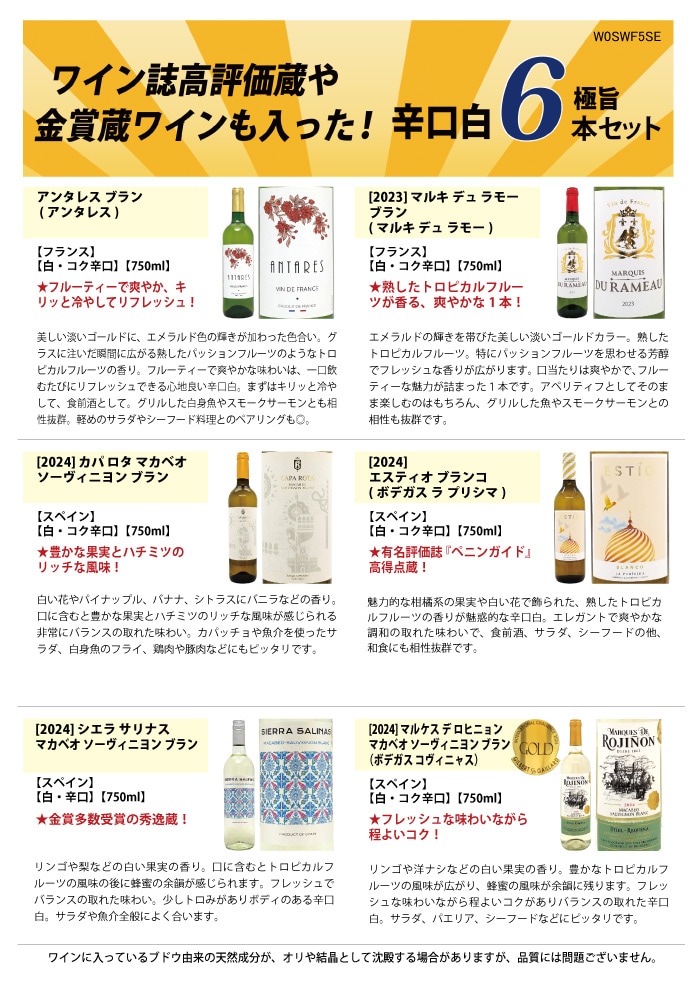 送料無料 ワイン ワインセット 高評価蔵や金賞蔵も入った辛口白6本セット ^W0SWF5SE^