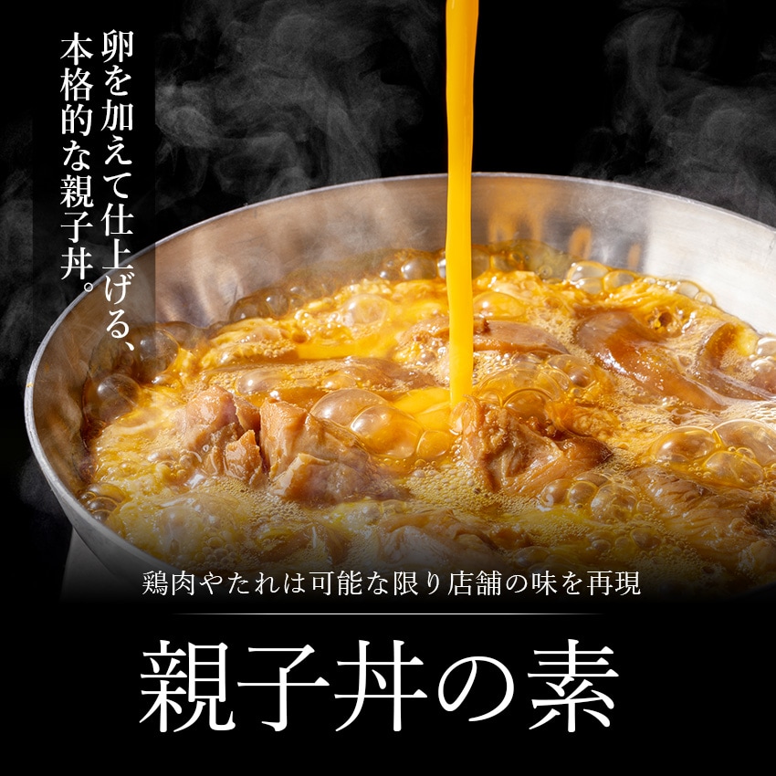 | 鶏肉(ベトナム産)、玉ねぎ(国産)、醤油、砂糖、本みりん、ぶどう糖果糖液糖、チキンエキス、かつおエキス、黒糖蜜、焼あごだし、昆布エキス、しいたけエキス、昆布粉末/調味料(アミノ酸等)、増粘剤(キサンタン)、チアミン、香料、カロチン色素、(一部に小麦・さば・大豆・鶏肉・豚肉を含む) |