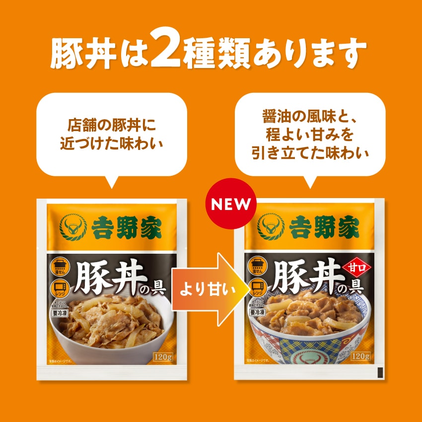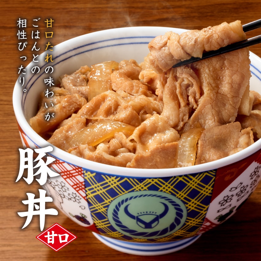| 豚丼の具に遂に甘口verが新登場!醤油の風味とほどよい甘みを引き立てた味わいに仕上げています。 |