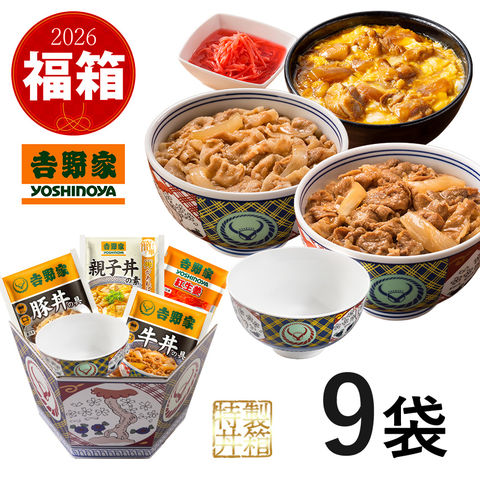 【吉野家】公式 2026福箱【午】4品9袋&吉野家茶碗付セット(牛丼4/袋・ 豚丼 / 親子丼の素 各2袋・紅生姜1袋・吉野家茶碗1個)【冷凍】 送料込み