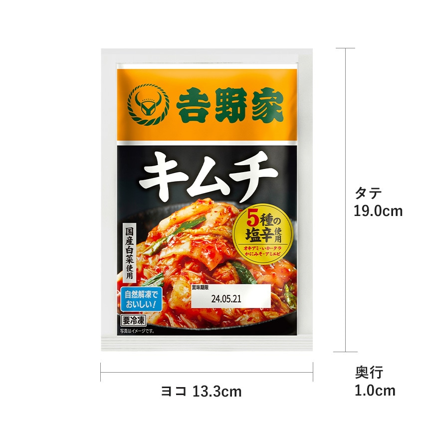 | 旨みとソフトな甘みが特徴の吉野家のキムチは「 後を引くおいしさ 」とご評価いただいています。からい、すっぱいキムチが苦手な方でも美味しく召し上がっていただけます。 |