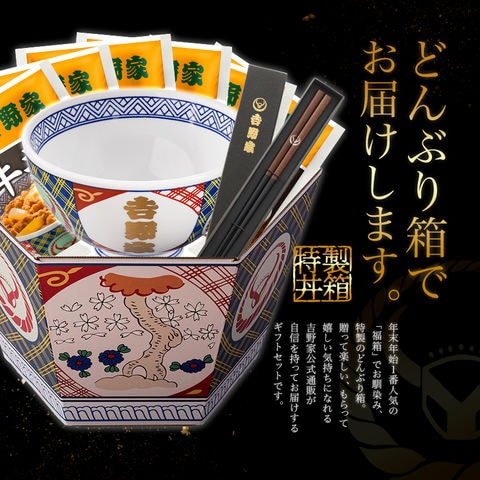 【お歳暮ギフト 1/15 10:00まで】【吉野家】 公式 冷凍牛丼の具6袋+金文字「吉野家」丼(並)・オリジナルお箸セット 数量限定 送料込み Thanksカード付 ギフトにおすすめ! どんぶり 若狭塗 有田焼