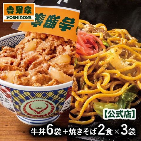 【吉野家】公式 牛丼の具6袋 牛肉焼きそば6食(2食入×3袋)セット 計12食分【冷凍】