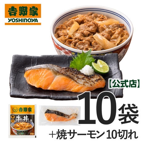 【吉野家】公式 冷凍焼サーモン10切れ(約50g×10袋)+牛丼の具10袋セット 計20袋【冷凍】 冷凍食品 おかず 惣菜 牛鮭定食 朝食 焼魚