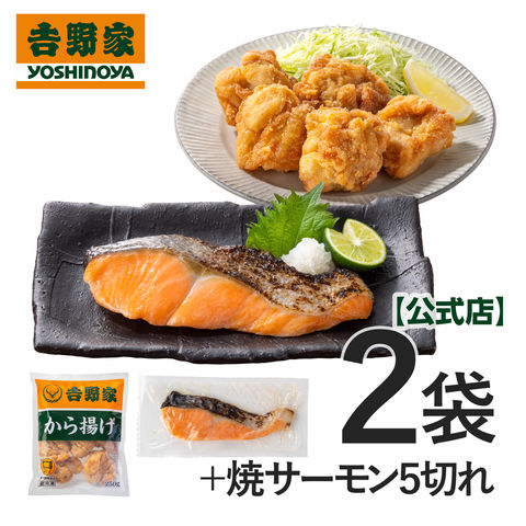 【吉野家】公式 冷凍焼サーモン5切れ(約50g×5袋)+冷凍から揚げ2袋セット 計7袋【冷凍】 冷凍食品 おかず 惣菜 唐揚げ 鶏肉 お弁当