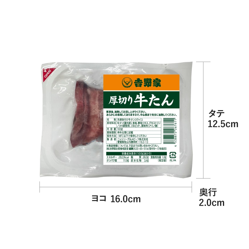 | 肉厚で大ぶり。食べ応え抜群の「厚切り牛たん」 吉野家店舗での人気商品「牛たん」がついに冷凍食品に! 吉野家の牛肉専門のバイヤーの熟練の目利きによる、こだわりの厚切り牛たんと定番の牛丼の具をご一緒にご家庭でもお楽しみください。 |