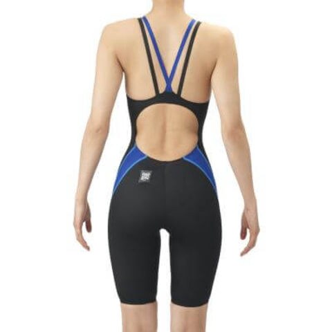 ポリウレタンを身体に巻き付く横方向に配置した素材「AQUA XTREME」を採用する事で泳ぎ易さを追求したニット素材の競泳モデル。