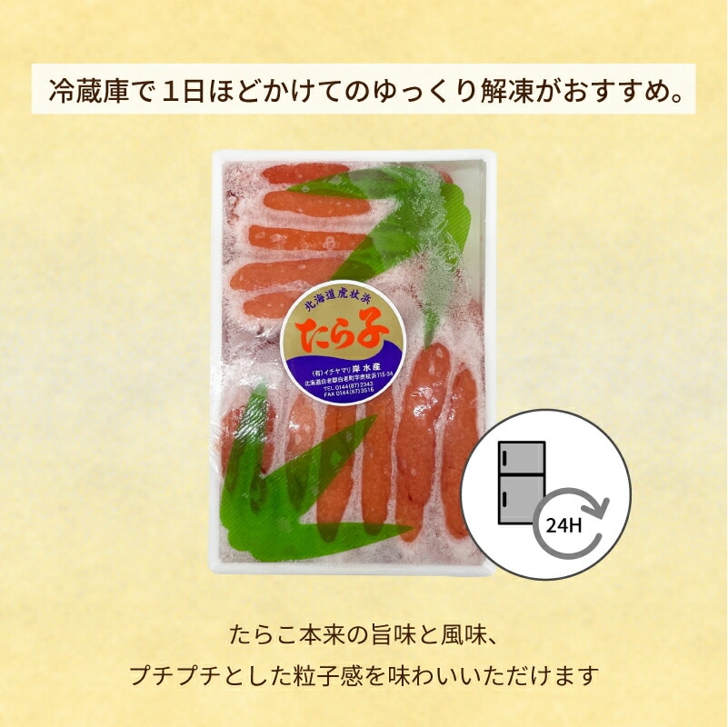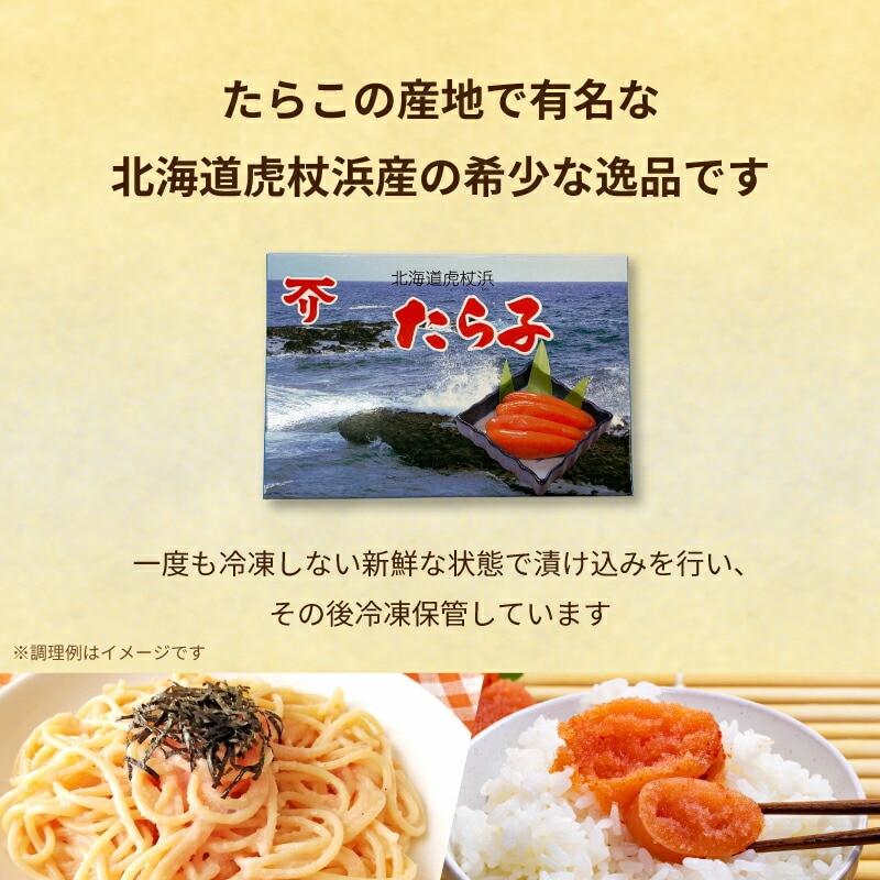 ■商品説明:国内で流通するタラコの9割は外国産ですが、こちらの商品は北海道虎杖浜産で水揚げされて助宗たらの卵を使用しております。