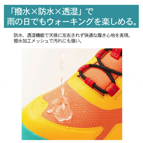 お客様が求めるウォーキングシューズの多様化に対応し、街でも山でも歩きやすい高いクッション性と安定性に加え、防水機能を備えた軽量のオールウェザーシューズです。