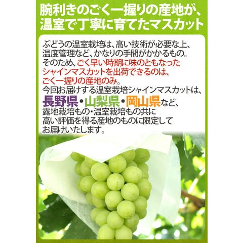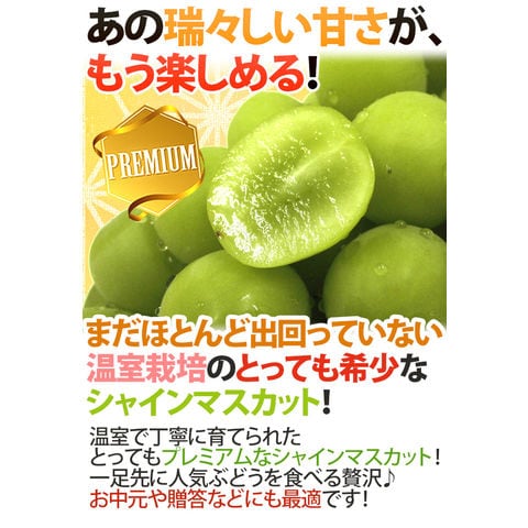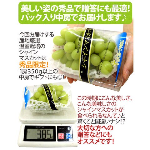 早期発送!プレミアム ”温室シャインマスカット” 秀品 約350g以上×《2pc》 化粧箱入り 産地厳選(冷蔵便)【予約 5月末以降】〈*北海道・沖縄:追加送料必要〉