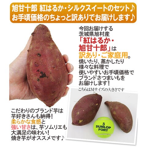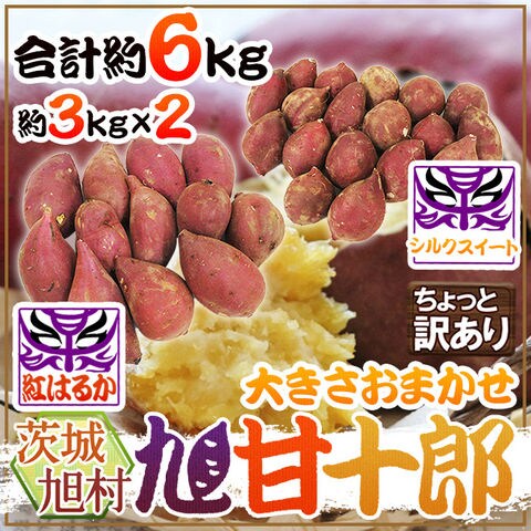 熟成高糖度さつまいも ”茨城県 旭村 旭甘十郎 紅はるか+シルクスイート 食べ比べセット” ちょっと訳あり 大きさおまかせ 合計約6kg【予約 1月末以降】 送料無料〈*北海道・沖縄:追加送料必要〉