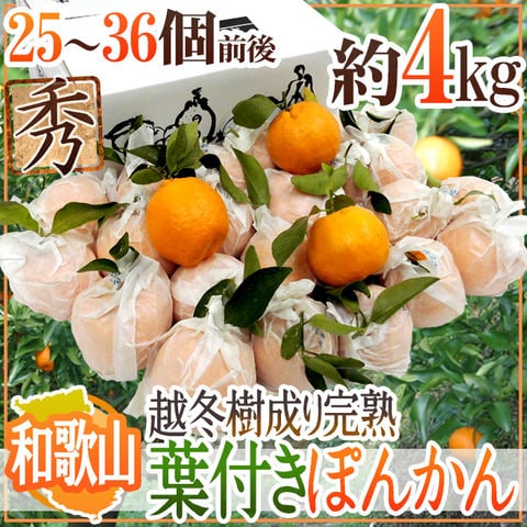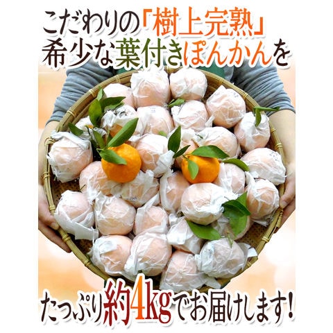 和歌山産 ”葉付きぽんかん” 秀品 25~36玉前後 約4kg ポンカン【予約 2月中旬以降】 送料無料〈*北海道・沖縄:追加送料必要〉