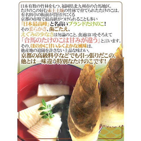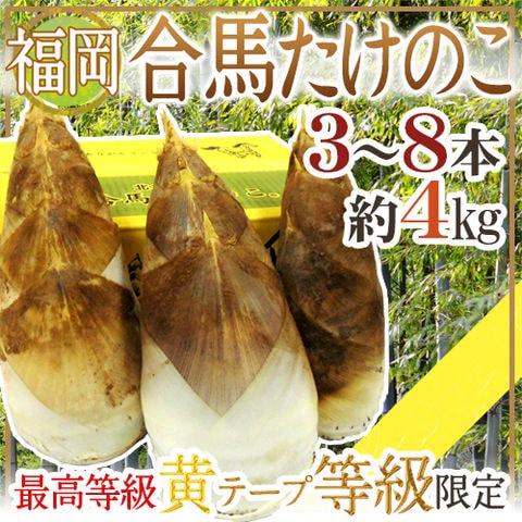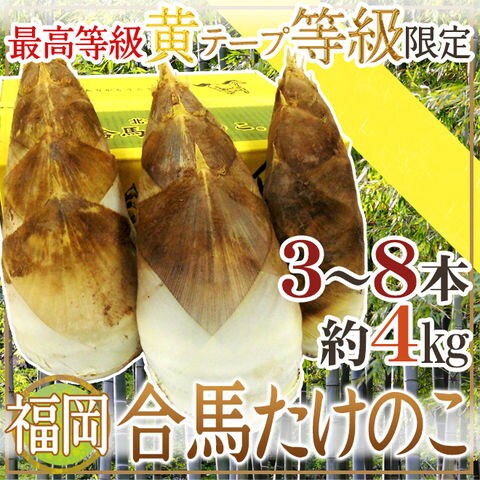 福岡 合馬産 ”たけのこ” 3~8本 約4kg 化粧箱 最高等級 黄テープ限定(冷蔵便)【予約 3月下旬以降】 送料無料〈*北海道・沖縄:追加送料必要〉