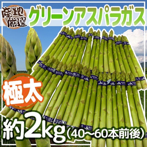 ”極太グリーンアスパラガス” 40~60本前後 約2kg 北海道/長野/広島/佐賀/福岡 など産地厳選(冷蔵便)【予約 4月以降】 送料無料〈*北海道・沖縄:追加送料必要〉