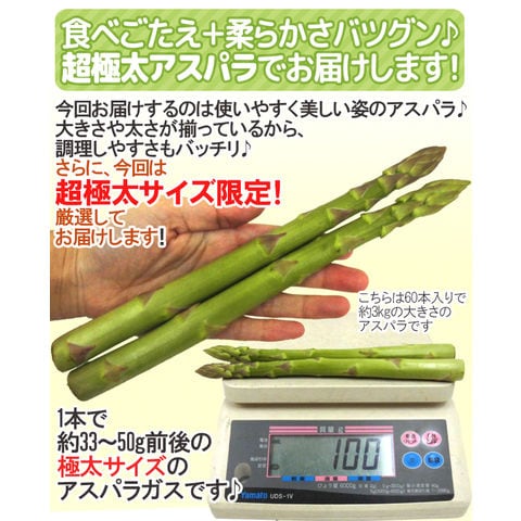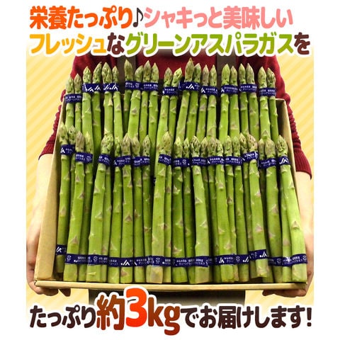 ”極太グリーンアスパラガス” 60~90本前後 約3kg 北海道/長野/広島/佐賀/福岡 など産地厳選(冷蔵便)【予約 4月以降】 送料無料〈*北海道・沖縄:追加送料必要〉