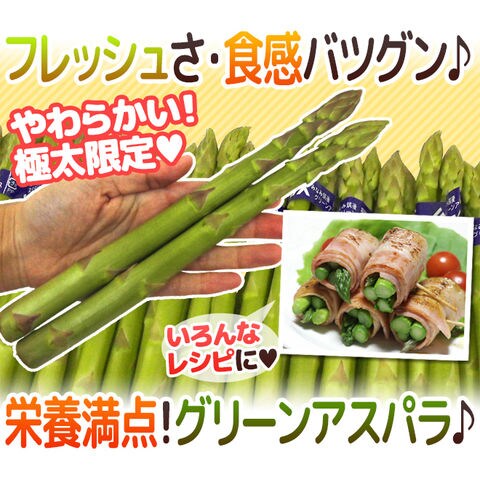 ”極太グリーンアスパラガス” 10~15本前後 約500g 北海道/長野/広島/佐賀/福岡 など産地厳選(冷蔵便)【予約 4月以降】〈*北海道・沖縄:追加送料必要〉