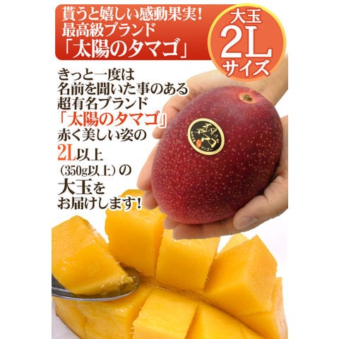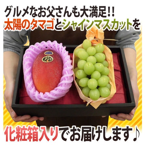 | 内容量 | マンゴー 1玉 2Lサイズ 約350g以上 シャインマスカット 約400g (生ものですので多少の前後はお許しください) |