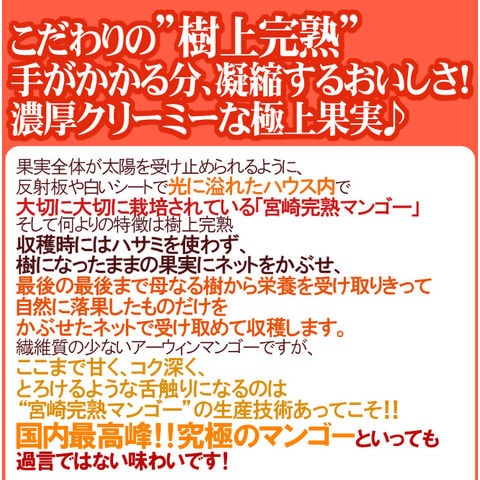 マンゴーはウルシ科の植物です。 体質によっては果汁等でかぶれることがありますので、 ご心配な方は、フォークなどを使用して 直接皮膚に触れないようにご注意ください。 |