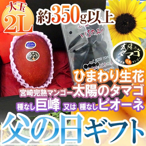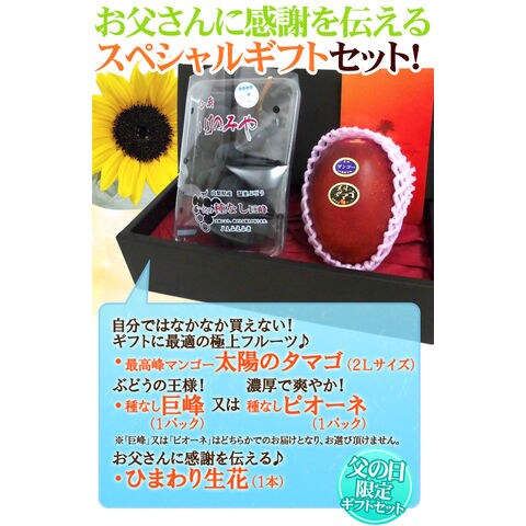 父の日ギフト ”種なし巨峰or種なしピオーネ+太陽のタマゴ” 大玉2Lサイズ+ひまわり生花1本 (冷蔵便)【予約 6月14~21日お届け予定】 送料無料〈*北海道・沖縄:追加送料必要〉