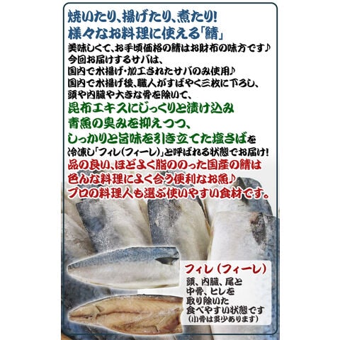 国産 ”昆布仕込み 塩鯖フィレ” 訳あり 約5kg 大きさおまかせ 三枚おろし サバ(冷凍便)送料無料〈*北海道・沖縄:追加送料必要〉