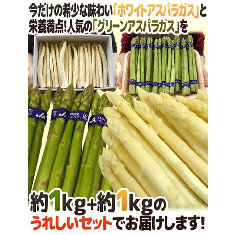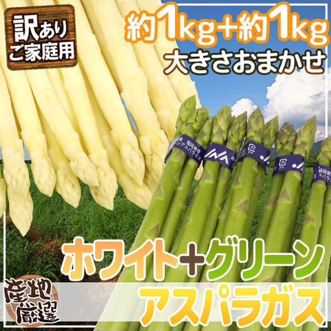 ”グリーン+ホワイトアスパラガスセット” 訳あり 約1kg+約1kg(計約2kg)北海道/長野/広島/佐賀/福岡 など産地厳選(冷蔵便)【予約 4月以降】 送料無料〈*北海道・沖縄:追加送料必要〉