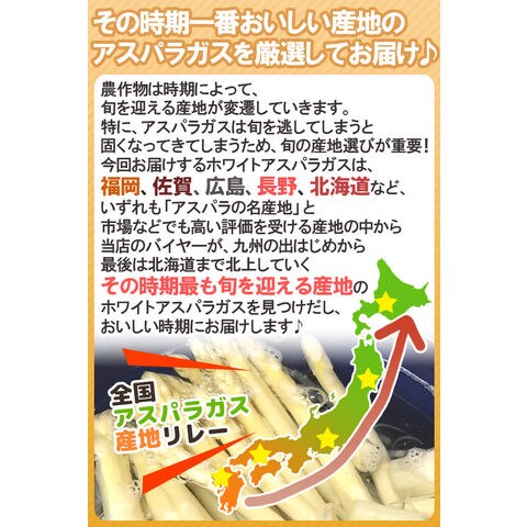 ”ホワイトアスパラガス” 訳あり 約1.5kg 北海道/長野/広島/佐賀/福岡 など産地厳選(冷蔵便)【予約 3月末以降】 送料無料〈*北海道・沖縄:追加送料必要〉
