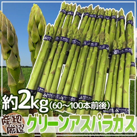 ”グリーンアスパラガス” 60~100本前後 約2kg /北海道/長野/広島/佐賀/福岡 など産地厳選(冷蔵便)【予約 3月末以降】 送料無料〈*北海道・沖縄:追加送料必要〉