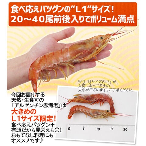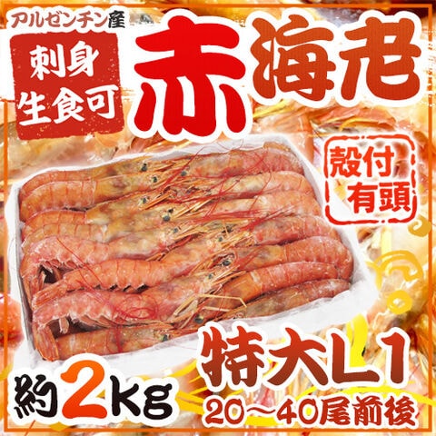 ”アルゼンチン赤海老” 20〜40尾前後 特大L1サイズ 約2kg 生食/お刺身可 有頭殻付き ブロック アカエビ/赤エビ(冷凍便)〈*北海道・沖縄:追加送料必要〉