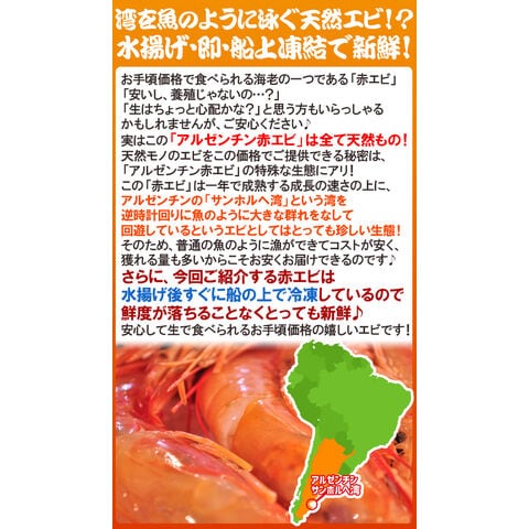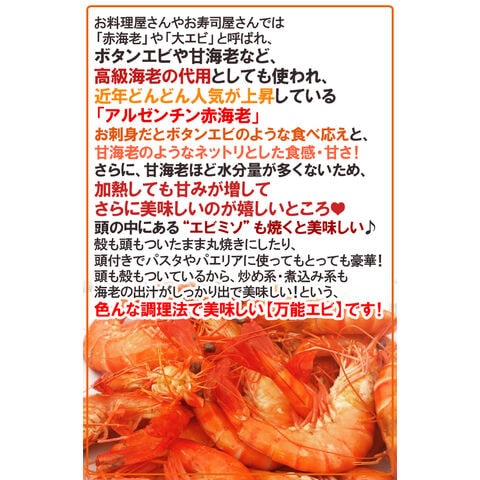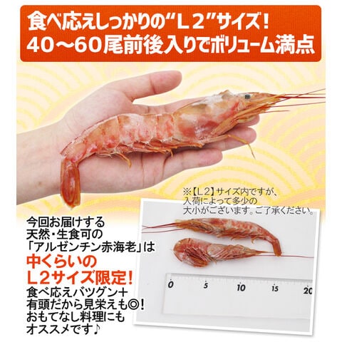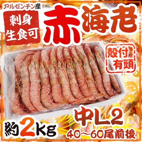 ”アルゼンチン赤海老” 40〜60尾前後 中L2サイズ 約2kg 生食/お刺身可 有頭殻付き ブロック アカエビ/赤エビ(冷凍便)〈*北海道・沖縄:追加送料必要〉
