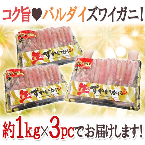 ロシア・アラスカ産 バルダイ種 冷凍 ”生ズワイガニ” ハーフポーション 約1kg×3pc(約3kg) 半剥き身/ハーフポーション/pc 送料無料(冷凍便)〈*北海道・沖縄:追加送料必要〉