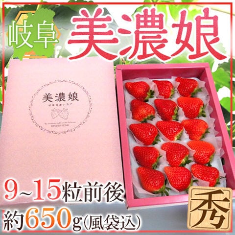 岐阜産 ”美濃娘(みのむすめ)” 9~15粒前後 約650g(風袋込) 化粧箱 いちご(冷蔵便)【予約 1月下旬以降】 送料無料〈*北海道・沖縄:追加送料必要〉