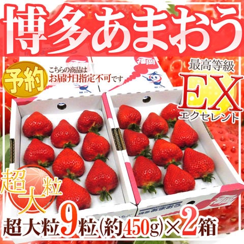 福岡産いちご ”博多あまおう” 最高等級EX(エクセレント) 2箱(超特大粒 1箱9粒 約450g)(冷蔵便)【予約 2月中旬以降】 送料無料〈*北海道・沖縄:追加送料必要〉