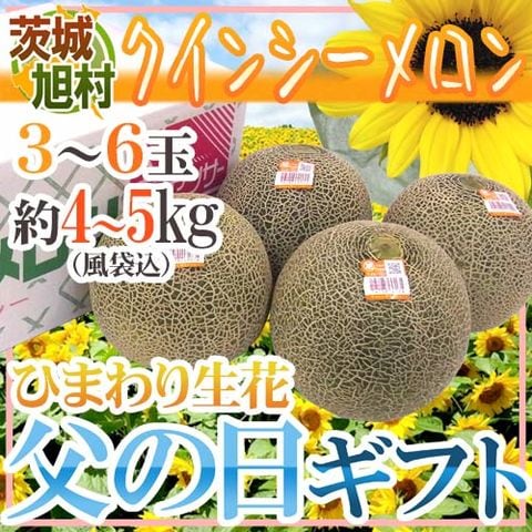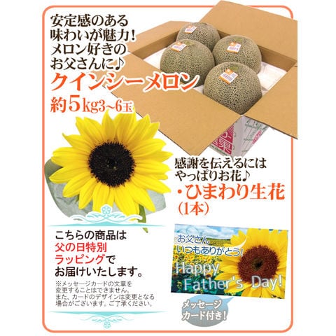父の日ギフト ”旭村 クインシーメロン” 秀品 3~6玉 風袋込約4~5kg+ひまわり生花1本【予約 6月14~21日お届け予定】 送料無料〈*北海道・沖縄:追加送料必要〉