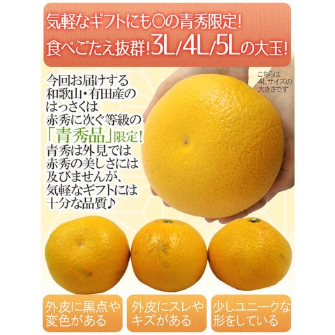 和歌山有田産 ”AQはっさく” 青秀 超大玉3L/4L/5Lサイズ 約9~10kg【予約 1月中旬以降】 送料無料〈*北海道・沖縄:追加送料必要〉