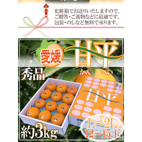 愛媛産 ”甘平” 秀品 L~2L 12~15玉 約3kg 化粧箱【予約 1月中旬以降】 送料無料〈*北海道・沖縄:追加送料必要〉