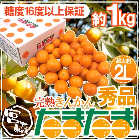 宮崎県 ”完熟きんかん たまたま” 秀品 大粒2Lサイズ 約1kg 化粧箱【予約 2月中旬以降】 送料無料〈*北海道・沖縄:追加送料必要〉