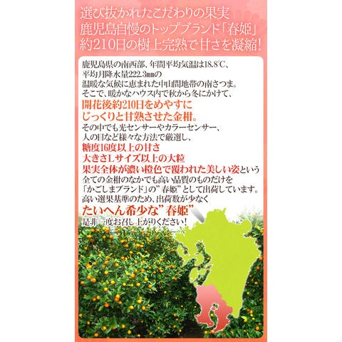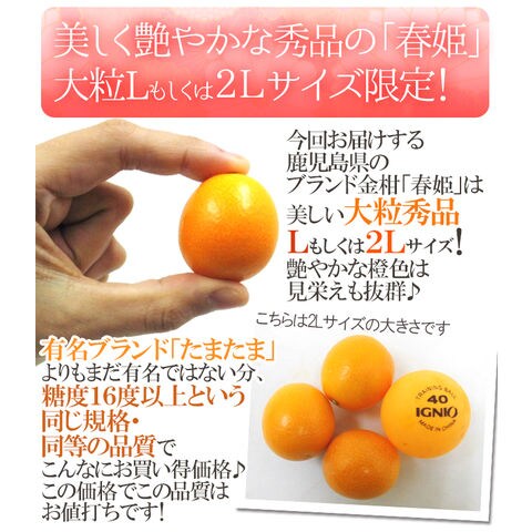 ”鹿児島県 完熟きんかん 春姫” L/2Lサイズ 約1kg 糖度16度以上【予約 2月下旬以降】〈*北海道・沖縄:追加送料必要〉