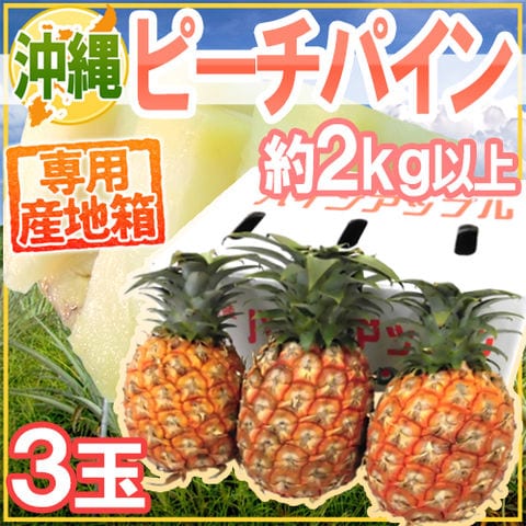 沖縄産 ”ピーチパイン” 3玉 約2kg以上 専用産地箱 パイナップル【予約 3月下旬以降】 送料無料〈*北海道・沖縄:追加送料必要〉