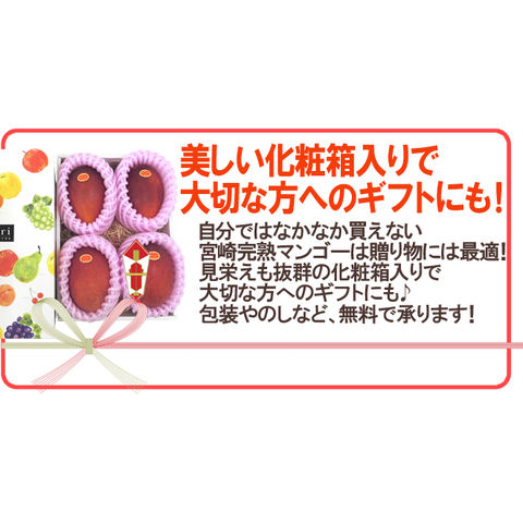 ”宮崎完熟マンゴー” 秀品 2Lサイズ 4玉入り 化粧箱 宮崎マンゴー(冷蔵便)【予約 3月下旬以降】 送料無料〈*北海道・沖縄:追加送料必要〉