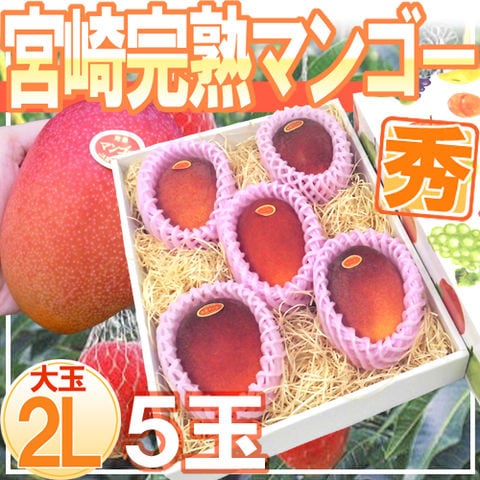 ”宮崎完熟マンゴー” 大玉秀品 2Lサイズ 5玉入り 化粧箱 宮崎マンゴー(冷蔵便)【予約 3月下旬以降】 送料無料〈*北海道・沖縄:追加送料必要〉