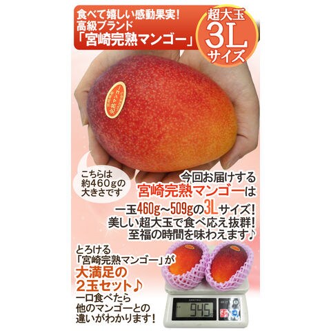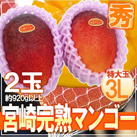 ”宮崎マンゴー” 秀品 超大玉 3Lサイズ 2玉(冷蔵便)【予約 5月下旬以降】 〈*北海道・沖縄:追加送料必要〉