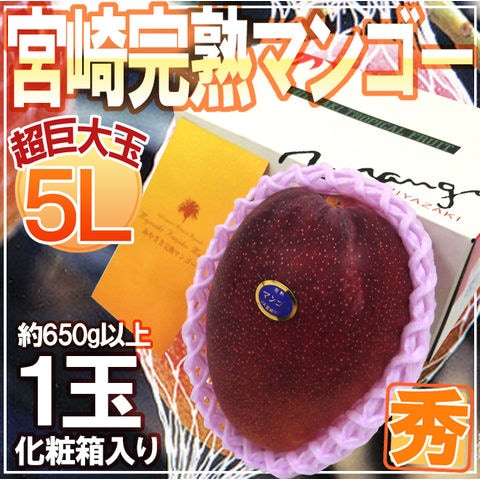 ”宮崎完熟マンゴー” 秀品 5Lサイズ 1玉 約650g以上 化粧箱 宮崎マンゴー(冷蔵便)【予約 4月以降】 送料無料〈*北海道・沖縄:追加送料必要〉