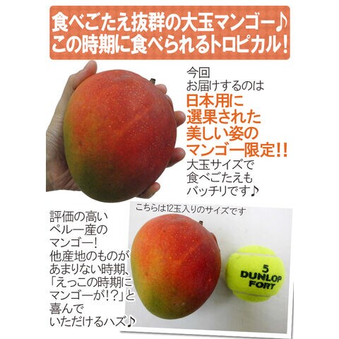 ペルー産 ”ケントマンゴー” 大玉12玉前後 約6kg 航空便(冷蔵便)【予約 12月中旬以降】 送料無料〈*北海道・沖縄:追加送料必要〉