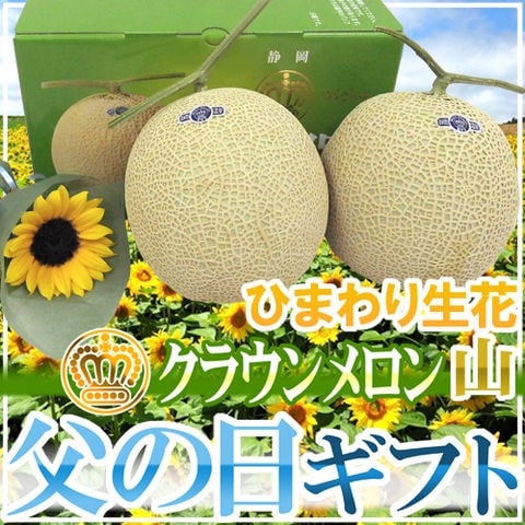 父の日ギフト ”クラウンメロン” 等級 山 2玉 約3.6kg+ひまわり生花1本【予約 6月14~21日お届け予定】 送料無料〈*北海道・沖縄:追加送料必要〉