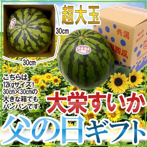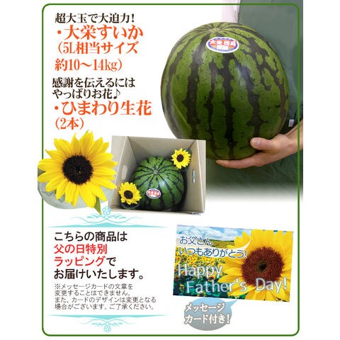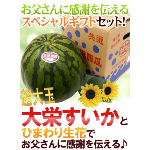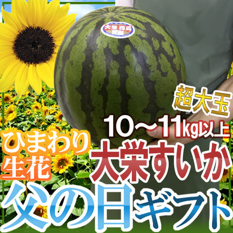 父の日ギフト ジャンボ ”大栄すいか” 秀品 1玉 約10~11kg以上+ひまわり生花2本【予約 6月14~21日お届け予定】 送料無料〈*北海道・沖縄:追加送料必要〉