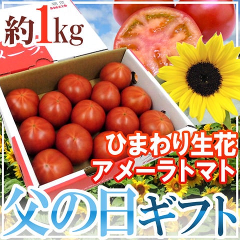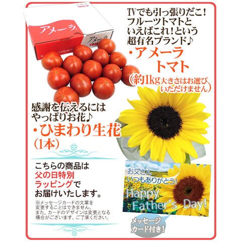 父の日ギフト ”アメーラトマト” 約1kg+ひまわり生花1本(冷蔵便)【予約 6月14~21日お届け予定】 送料無料〈*北海道・沖縄:追加送料必要〉